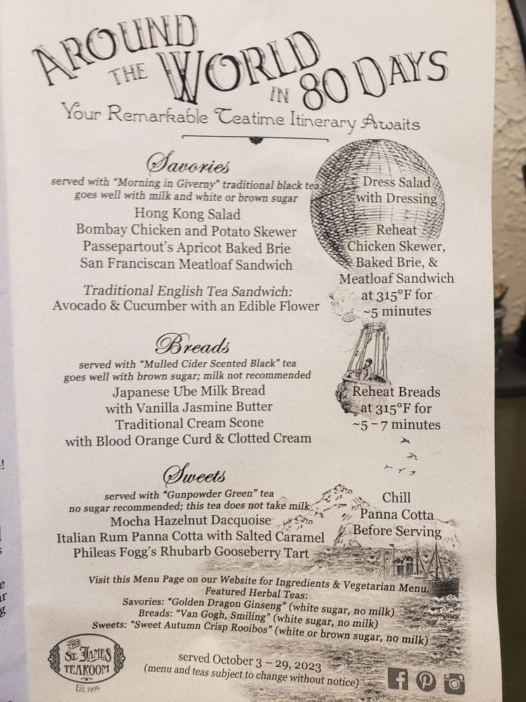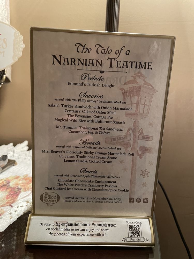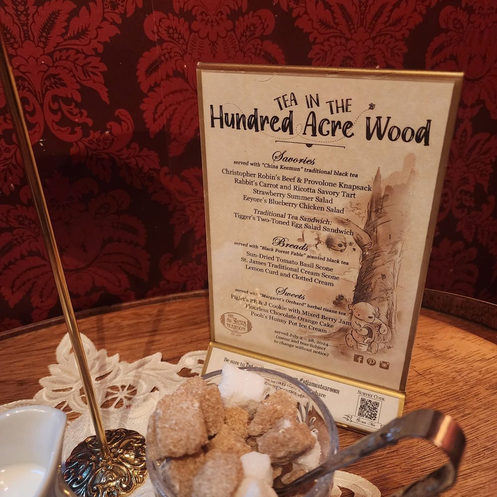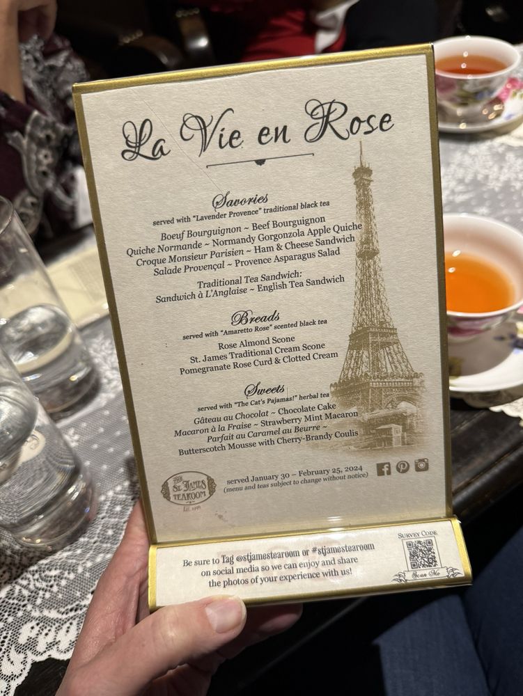 The St. James Tearoom in Albuquerque offers a unique tea experience with themed menus that change every couple of months. The ambiance is charming, and the attention to detail is impeccable. Guests can enjoy a variety of savories like Boeuf Bourguignon and Croque Monsieur, complemented by delicious bread options such as Rose Almond Scones. The menu also includes sweet treats like Pomegranate Rose Curd with Clotted Cream. Customers rave about the fantastic service and the cozy private rooms perfect for catching up with friends or celebrating special occasions. The St. James Tearoom is a top-notch destination for a delightful tea party experience with a touch of English charm.